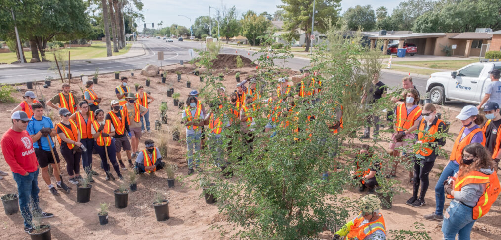 Tempe adopted its 2022 Climate Action Plan, which outlines how to address the threat of extreme heat and strategies to lower greenhouse gas emissions from energy and transportation sectors. The plan features community members and community partnerships as co-authors of four agendas: Youth, Business, Climate Justice, and Neighborhoods. The plan is a model of co-creating climate action with Community-based Organizations, residents, and businesses, shifting from government-centered climate action to people-centered climate action
