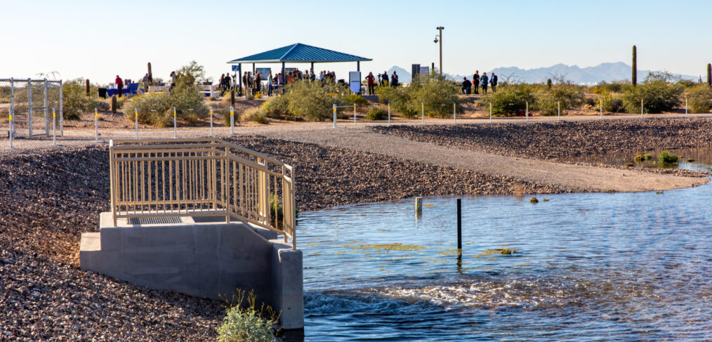 The Shirley Scott Southeast Houghton Area Recharge Project (SHARP) in Tucson is a pioneering initiative offering green space for recreation and educational outreach. Spanning 40 acres, SHARP recharges recycled water into the aquifer, emphasizing multi-beneficial use, with a purpose to enhance community resilience, establish a sustainable water supply, and serve as a recreational and educational hub. The facility, landscaped with native plants and irrigated with reclaimed water and harvested rainwater, provides recreational spaces for walking, biking, and family picnics. It diversifies and enhances Tucson Water’s water resource portfolio, recharging up to 4,000 acre–feet of class A reclaimed water annually supporting the community’s long-term water needs.
